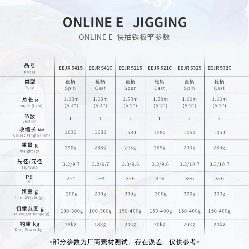 Top Quality ECOODA Online E Jigging Rod 1.58m 1.60m 1.63m 1/2pcs PE2-6 Lure WT 100-400g Full FUJI Part Spinning Casting Fishing Rod Seawater